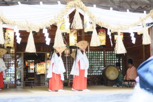氏子総代の方から神社の詳しい資料も頂き、舞宮での雅楽の生演奏に美しい舞を拝見させて頂きました。