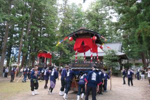 境内では、勇壮な山車回しに花火、山車は地名からなる上大妻(かみおおづま)と下大妻(しもおおづま)の2台、「おおづま」と発音は濁るそうです。それぞれに太鼓や笛の鳴り物を乗せて、境内を何度も力強く往復し、祭りに華やかさを添えていました。