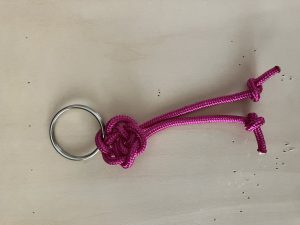 初心者でも取り組みやすいように太めのコードを使って練習し、まずはキーホルダーに仕立てました